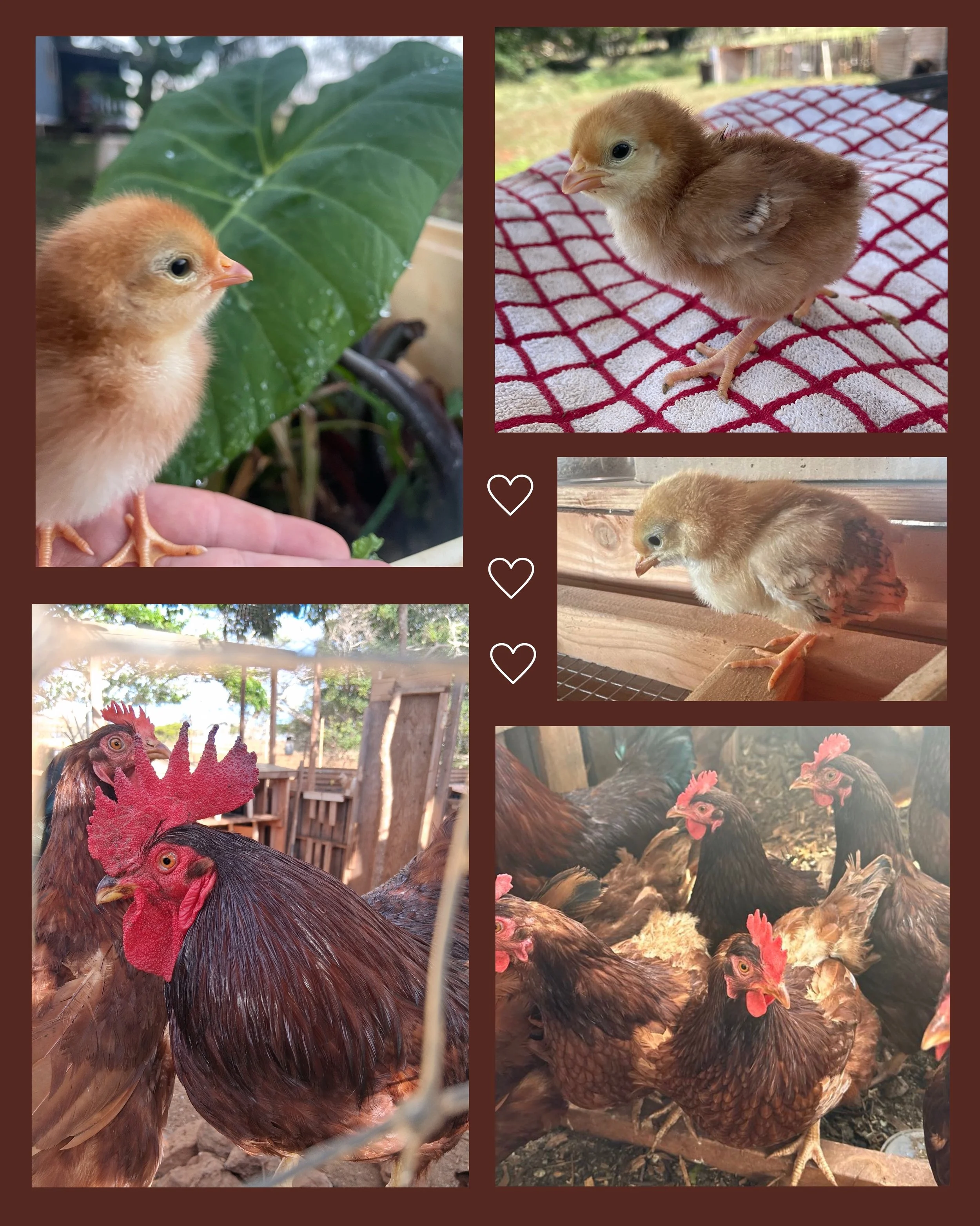 These Rhode Island Red chicks are a top choice for any local flock, offering a blend of productivity and resilience perfect for our islands.